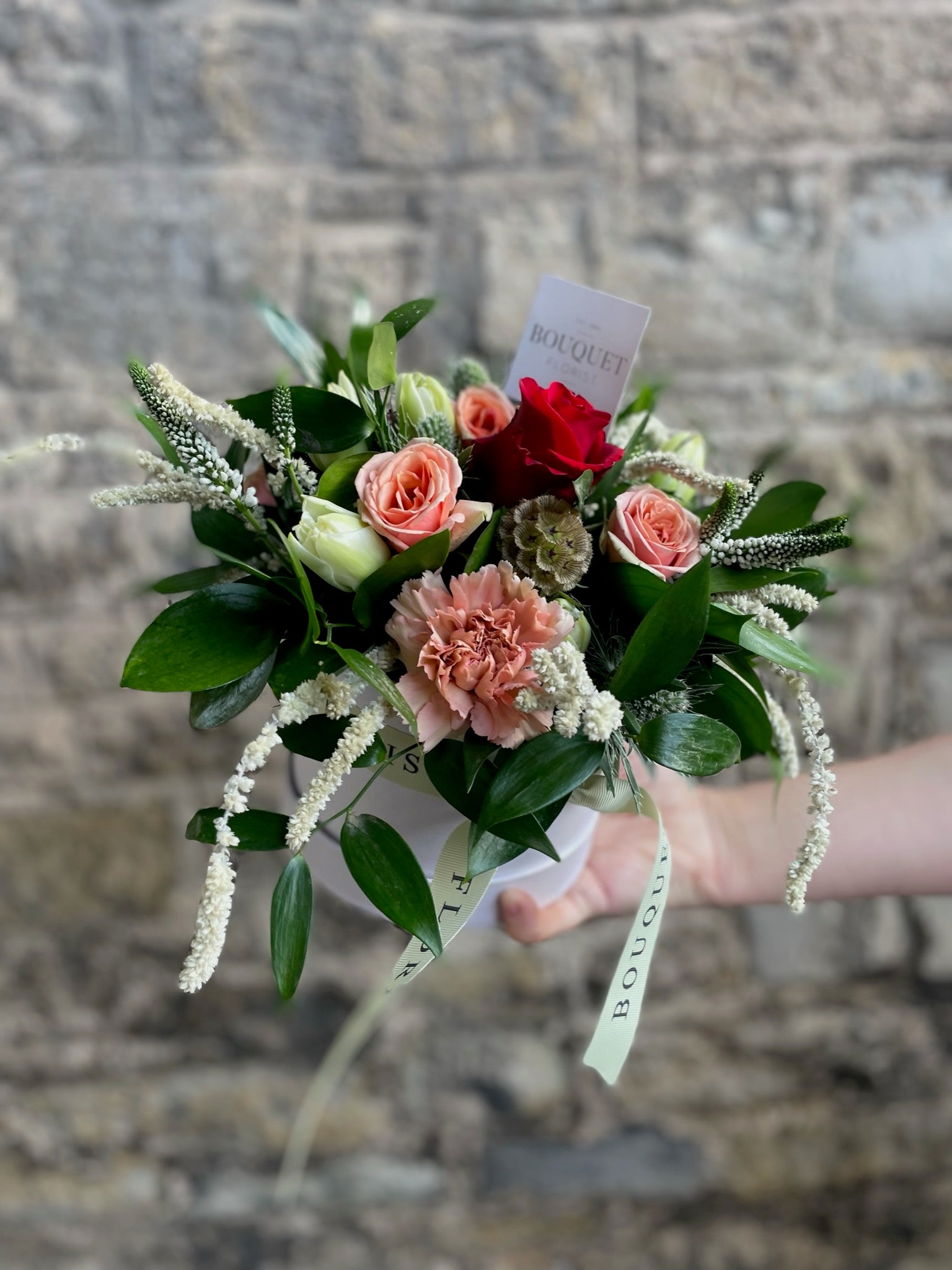 All our designs are bespoke and created by our experienced florists using the freshest flowers available on the day. Please remember whilst your gift will look different to the one pictured we will try our best to make sure we follow your instructions and requests to make it extra special.