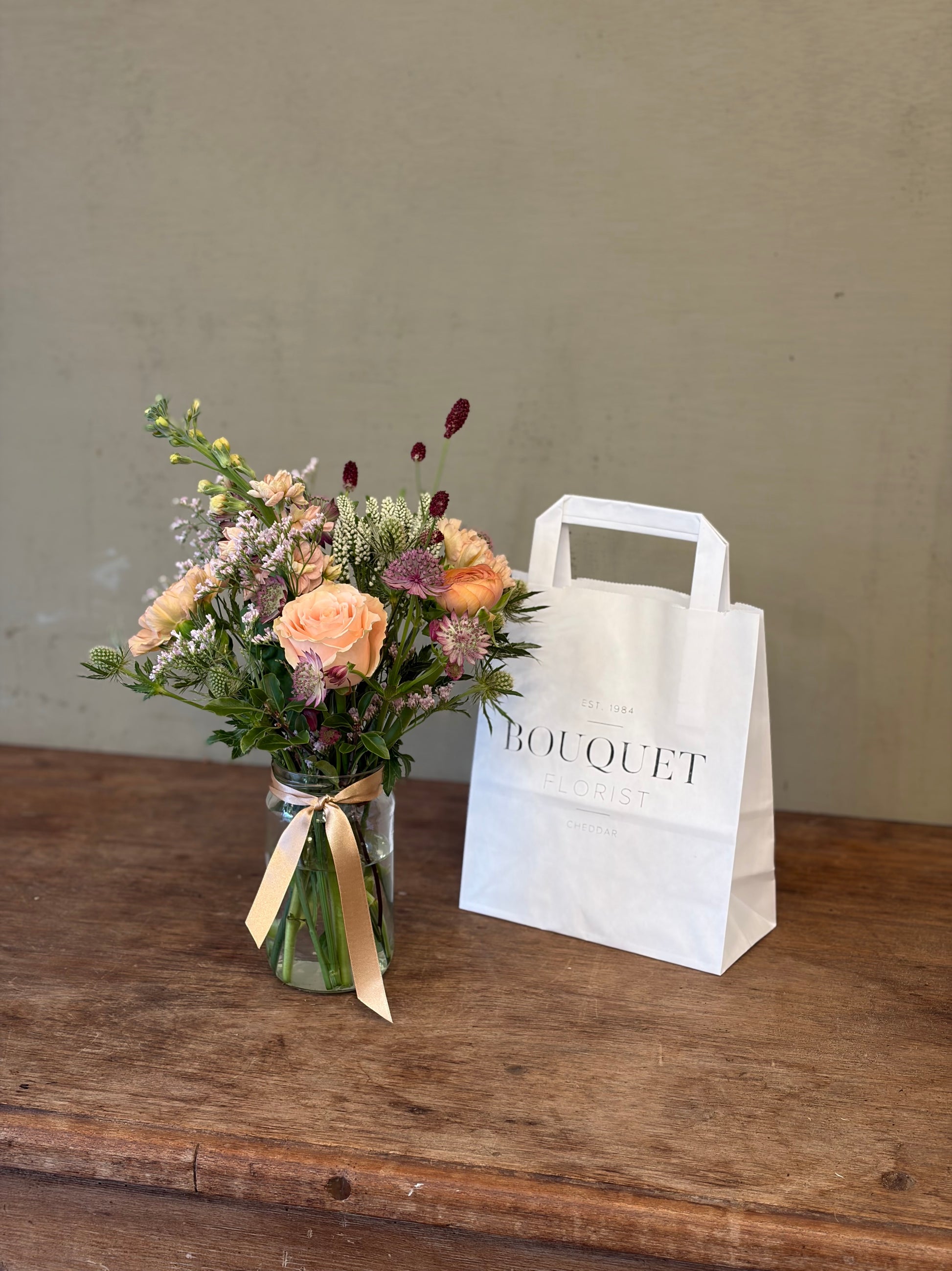Pastel Jar Posy in Bag (£20 / £25)